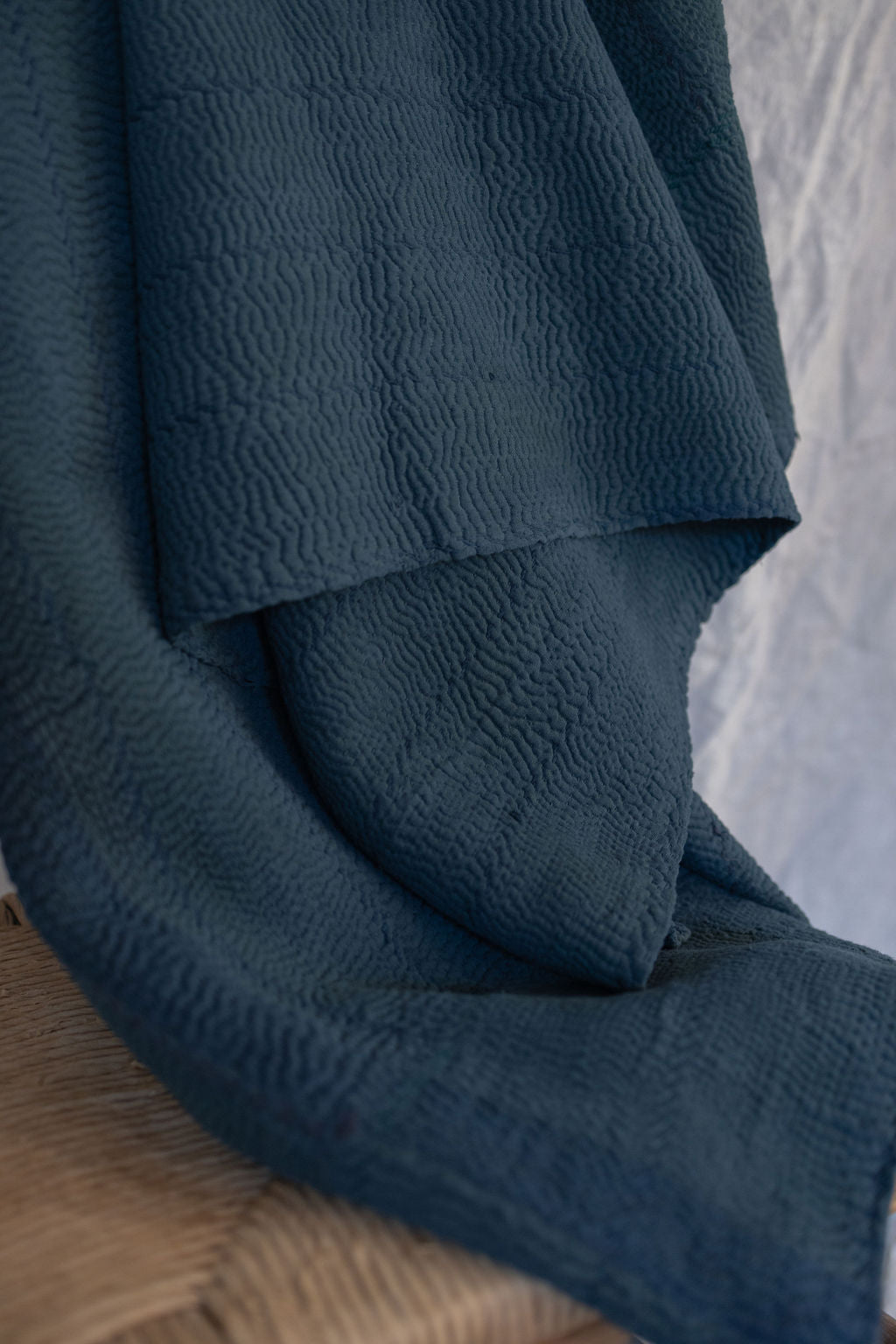 Aloka Home strives to procure unusually beautiful materials. This one-of-a-kind quilt is made using remnants of old saris stitched together to create a unique blanket. Each quilt is typically 60-80 years old. Their quilts are shampooed multiple times to create a softened feel.